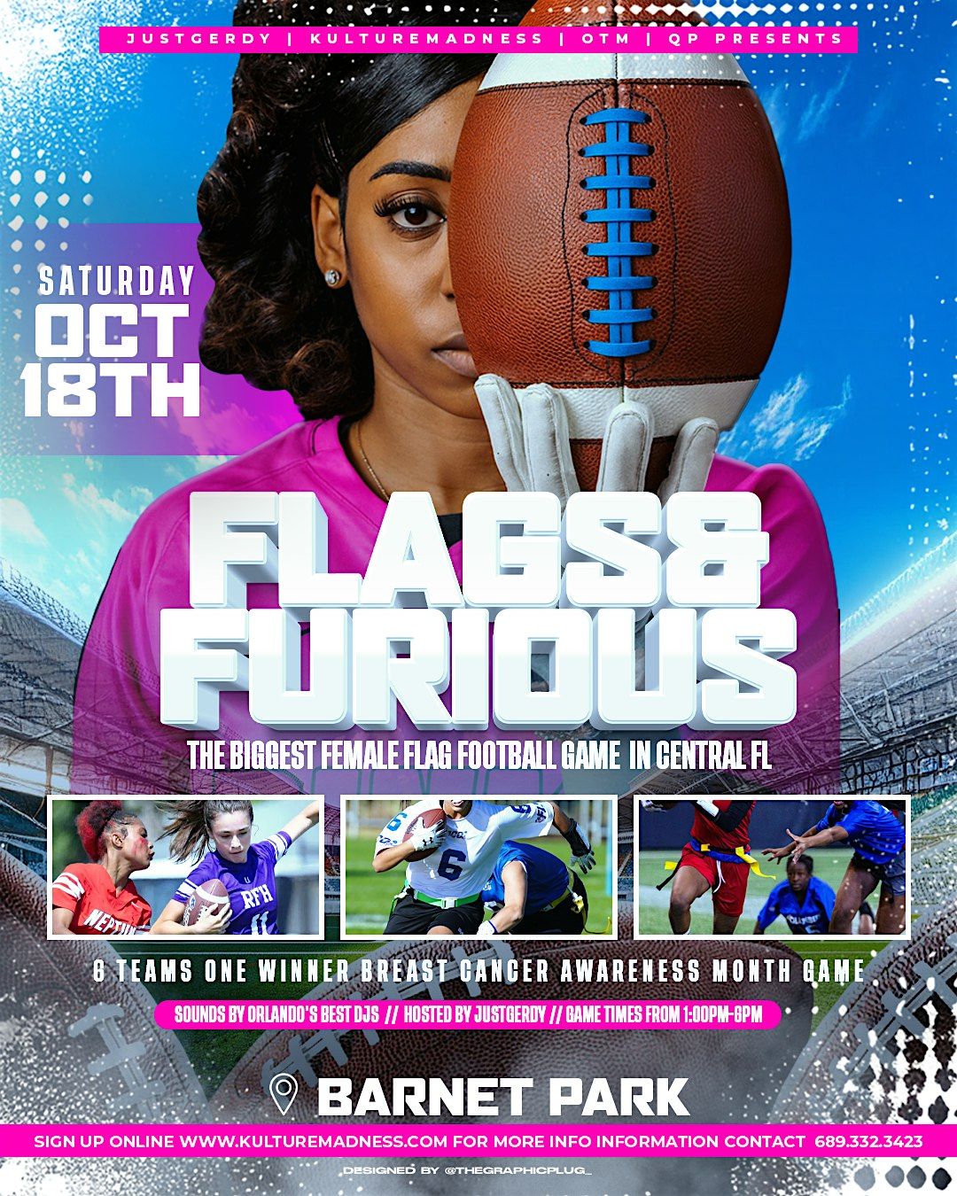 "Get Ready, Orlando! 💥 Join us for the "Flags & Furious" Women's Flag Football Tournament on Saturday, October 18th! 🏈💪