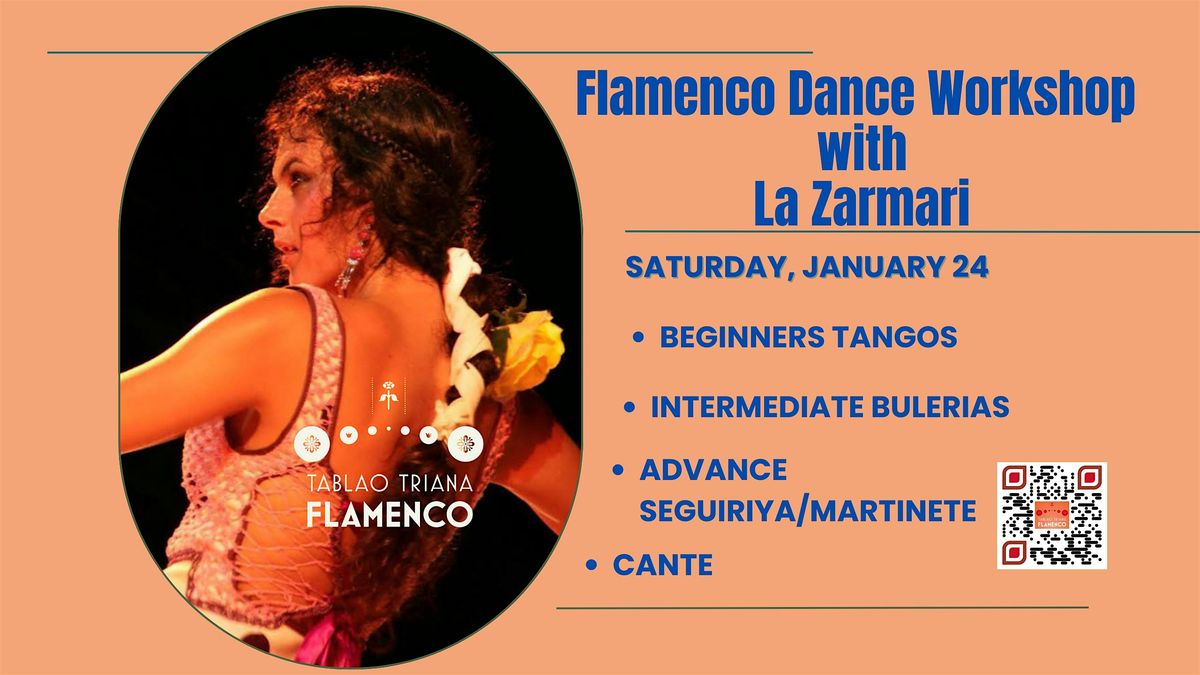 La Zarmari is here to share her knowledge, lineage, and lived experience of flamenco. This is more than a workshop; it is a direct transmission from the source.