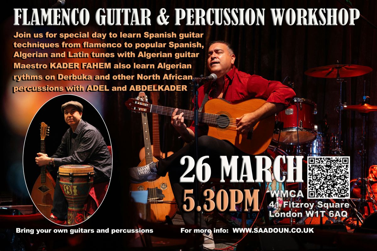 Join us for special day to learn Spanish guitar techniques from flamenco to popular Spanish, Algerian and Latin tunes with Algerian guitar Maestro KADER FAHEM