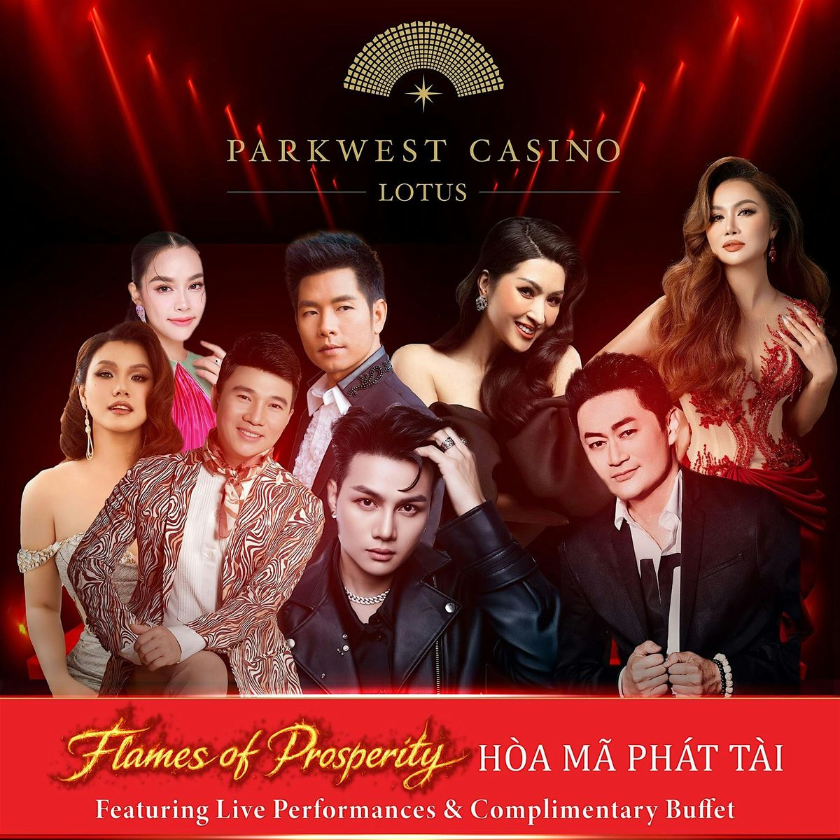 Experience an unforgettable night of live Vietnamese performances as Flames of Prosperity brings together celebrated artists for a bold concert experience. Inspired by the Year of the Fire Horse, this event represents ambition, strength, and unstoppable momentum — creating an atmosphere filled with energy, excitement, and cultural pride.