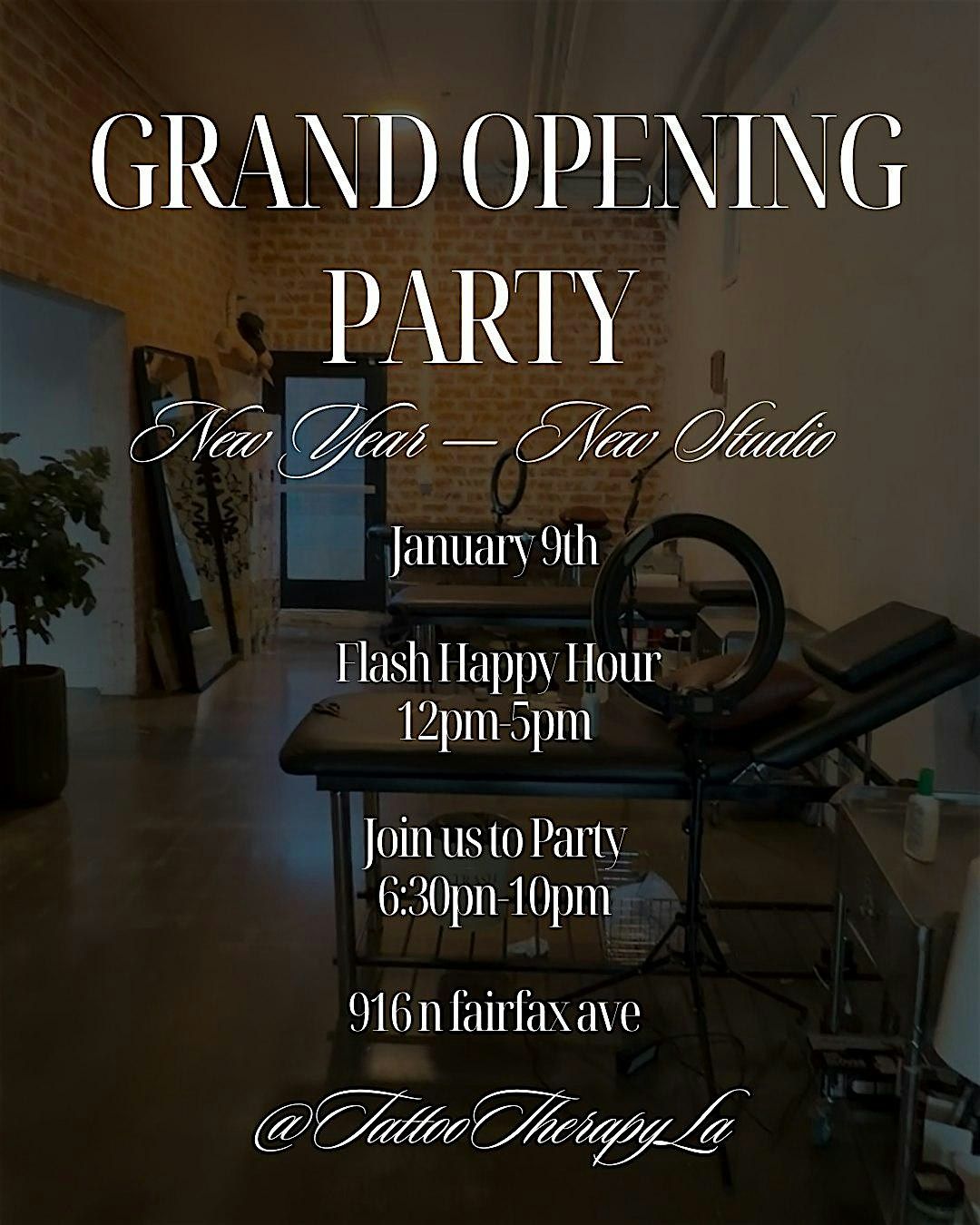 Come by our grand opening Flash day! 12-5pm 916 N Fairfax Ave West Hollywood! Flash tattoos starting at $40, $10 Piercings, Tooth gems etc!