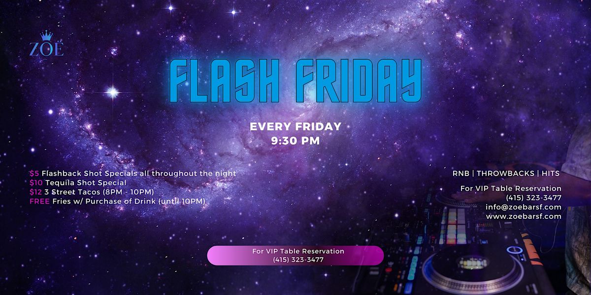 Flash Fridays @ZOE: RnB | Hits| Buy 1 Get 1 Drink Specials