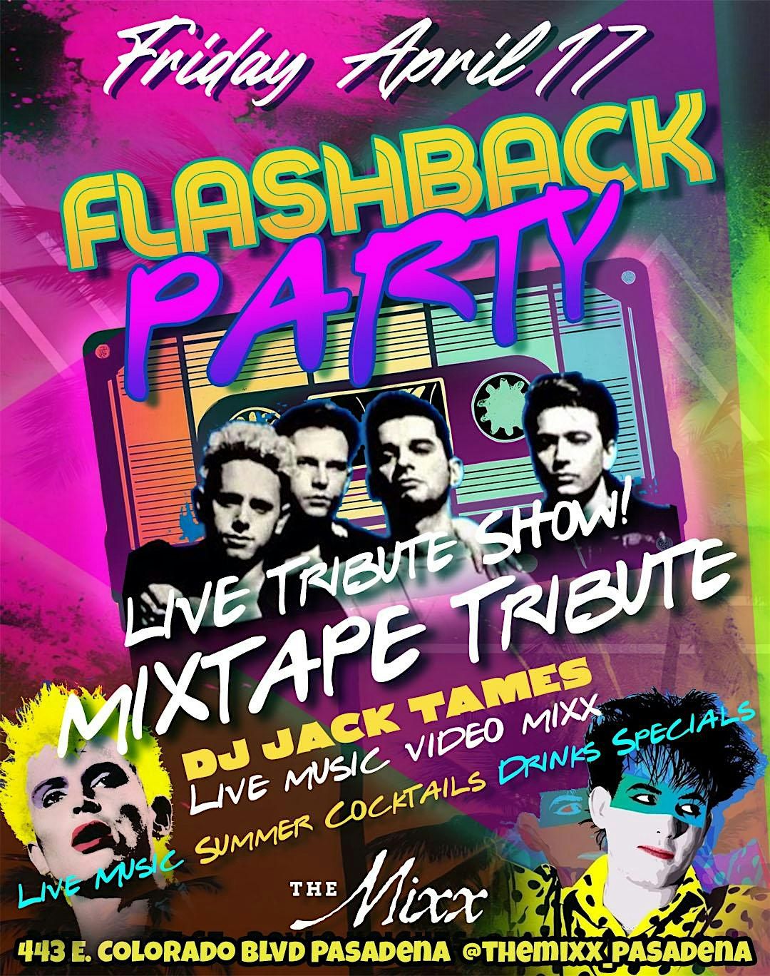 Back by popular demand. Your favorite live MIX TAPE returns to Pasadena with an unforgettable live Flashback tribute show! Dance and sing along to all your favorite Flashback hits live on stage. Dance and sing along to all your favorite live music video mixxes on the largest LED Wall in town with DJ Jack Tames. Enjoy drink and dinner specials. VIP Lounges and good vibes with new and old friends. #livemusic #pasadena #tributeshow #flashbackparty