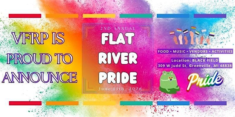 Join us on June 13, 2026, at Black Field in Greenville, MI, for a full day of live music, local vendors, community organizations, activities, and connection. Flat River Pride is intentionally designed to be welcoming and accessible for all—whether you’re part of the LGBTQIA+ community or an ally showing visible support.