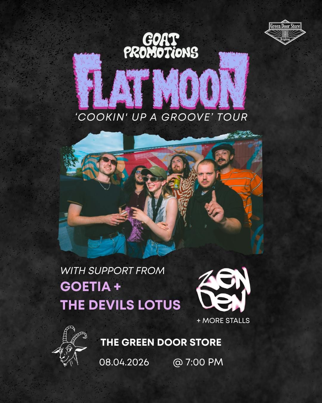 Brighton, get ready for a night of psychedelic funk, groove, and the craziest live music! Flatmoon are taking over The Green Door Store for one explosive show you won’t want to miss.Flatmoon, the six-piece psych-funk powerhouse, are currently on their UK tour celebrating the release of their debut album Cookin’ Up A Groove. Known for blending funk, punk, afrobeat, jazz, and disco, their live performances are unpredictable, infectious, and guaranteed to get you moving. This Brighton date is your chance to catch them close to home and experience their dynamic sound live.