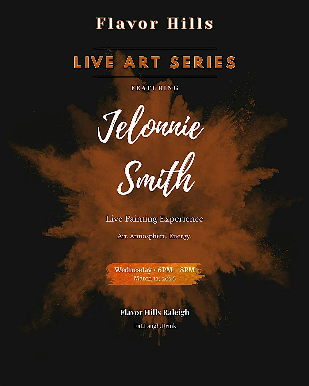 Flavor Hills Raleigh welcomes featured artist Jelonnie Smith for a live painting experience that unfolds in real time while guests enjoy dinner, cocktails, and the vibrant energy of the room.