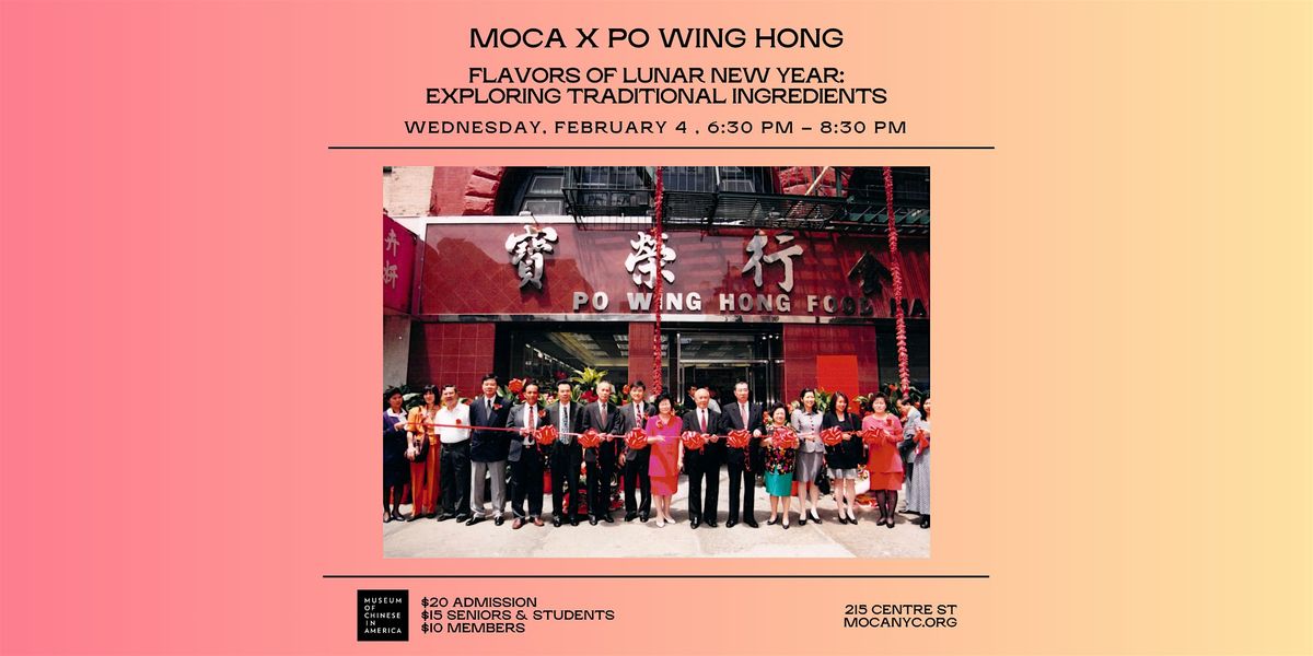 In collaboration with Po Wing Hong Food Market 寶榮行, a cornerstone of Manhattan’s Chinatown for more than 45 years, the Museum of Chinese in America (MOCA) invites you to an engaging Lunar New Year tasting and conversation that celebrates the flavors and stories behind traditional ingredients. Join Sophia Tsao, Executive Vice President of Po Wing Hong, for a guided introduction to staple ingredients commonly used for New Year cooking, from premium dried seafood and nourishing soup components to herbs and pantry essentials shaped by generations of culinary wisdom.