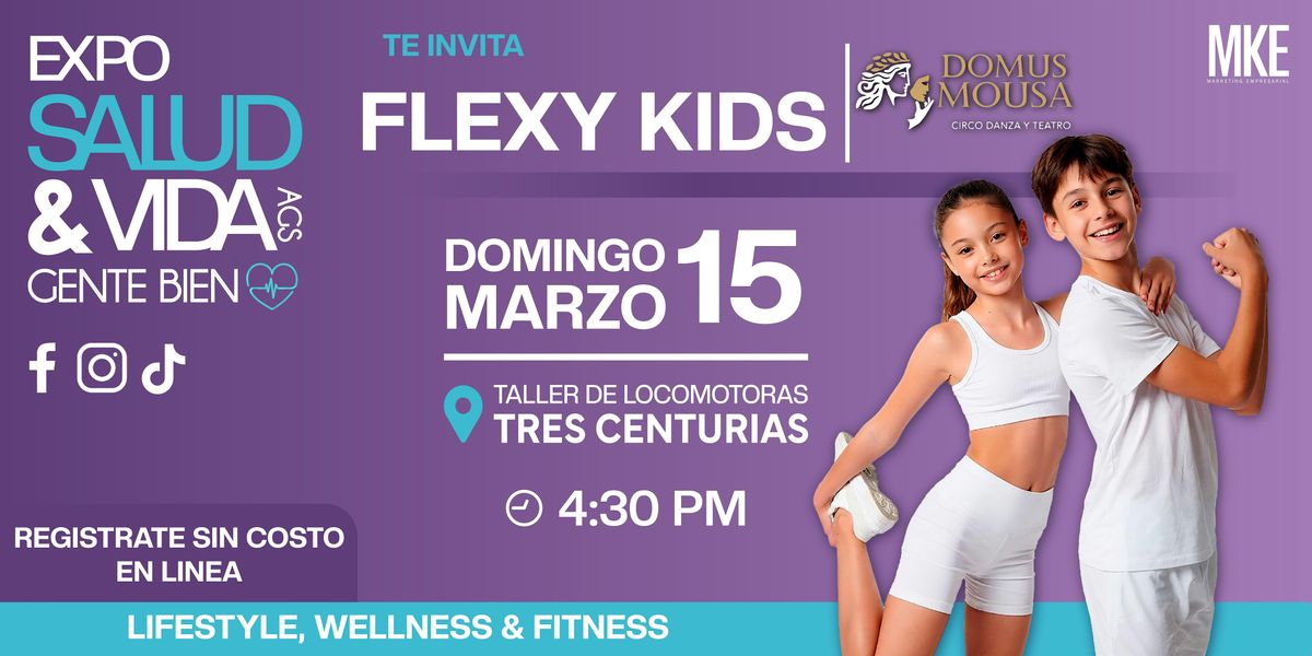 Clase muestra gratuita de FLEXIBILIDAD ACTIVA impartida por el DOMUS MOUSA en EXPO SALUD & VIDA AGUASCALIENTES