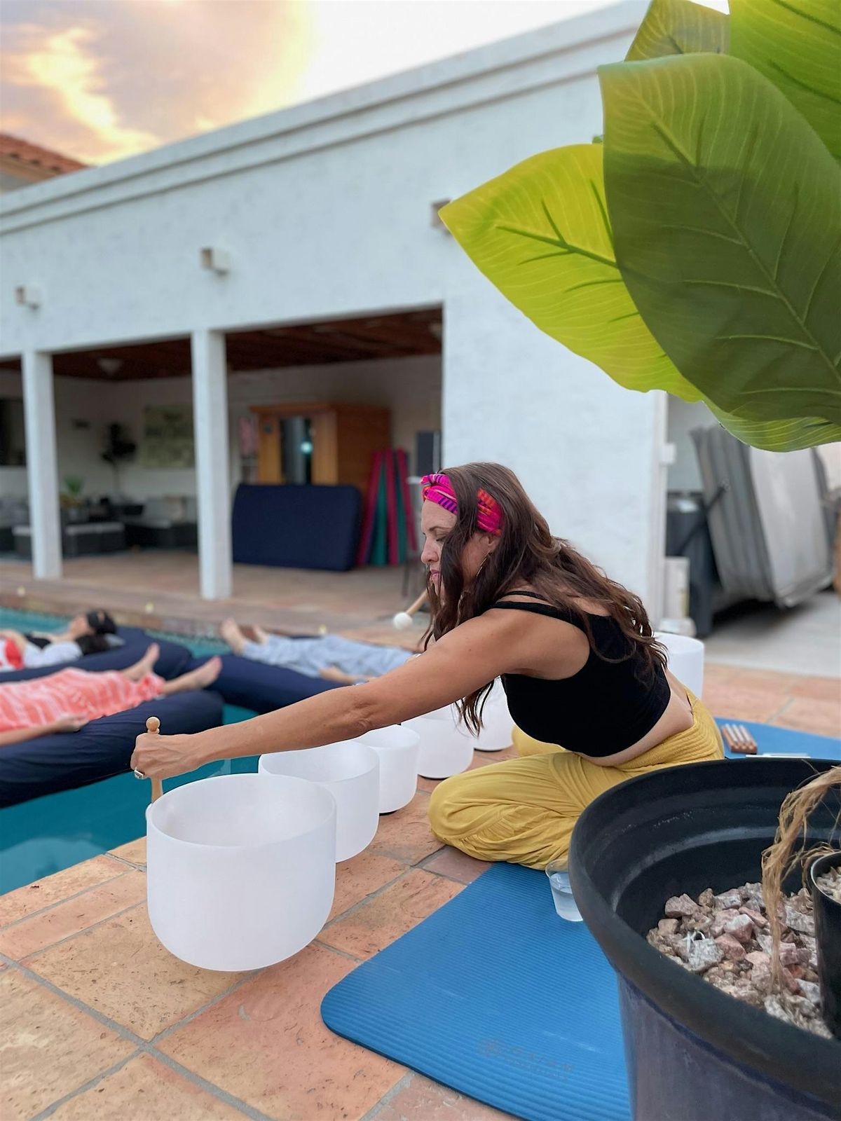 • Floating sound bath with crystal singing bowls + chimes