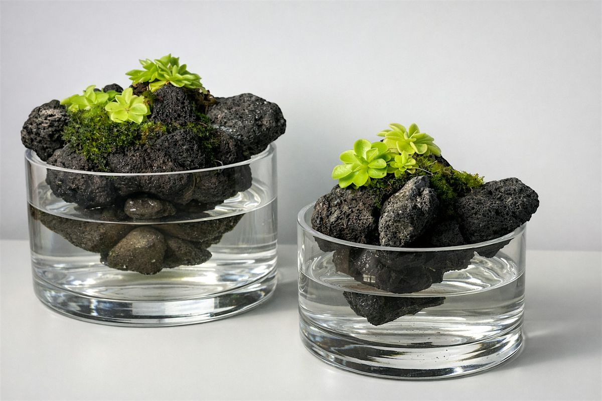 Join local artist Jackson Carey in his studio at the historic Wychwood Barns for a hands-on workshop where we will create floating stone gardens, sculptural forms of volcanic rock planted with live moss and miniature flowering plants called butterworts.