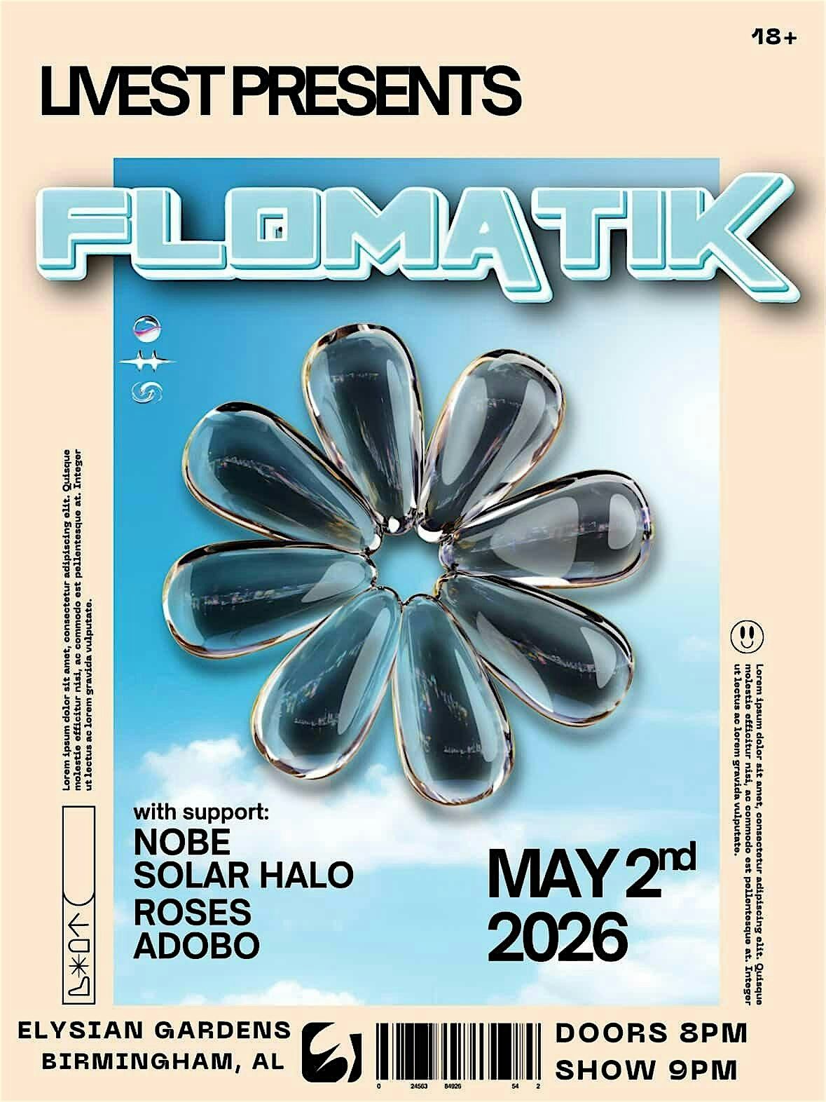 Get ready for a night full of vibes at Elysian Gardens! Join Flomatik along with Solar Halo, NOBE, and other awesome artists on May 2, 2026 at 9:00 PM (Central Time). It’s the perfect chance to catch some great tunes and have a blast with friends. Don’t miss out on this in-person event that’s all about good music and good times!