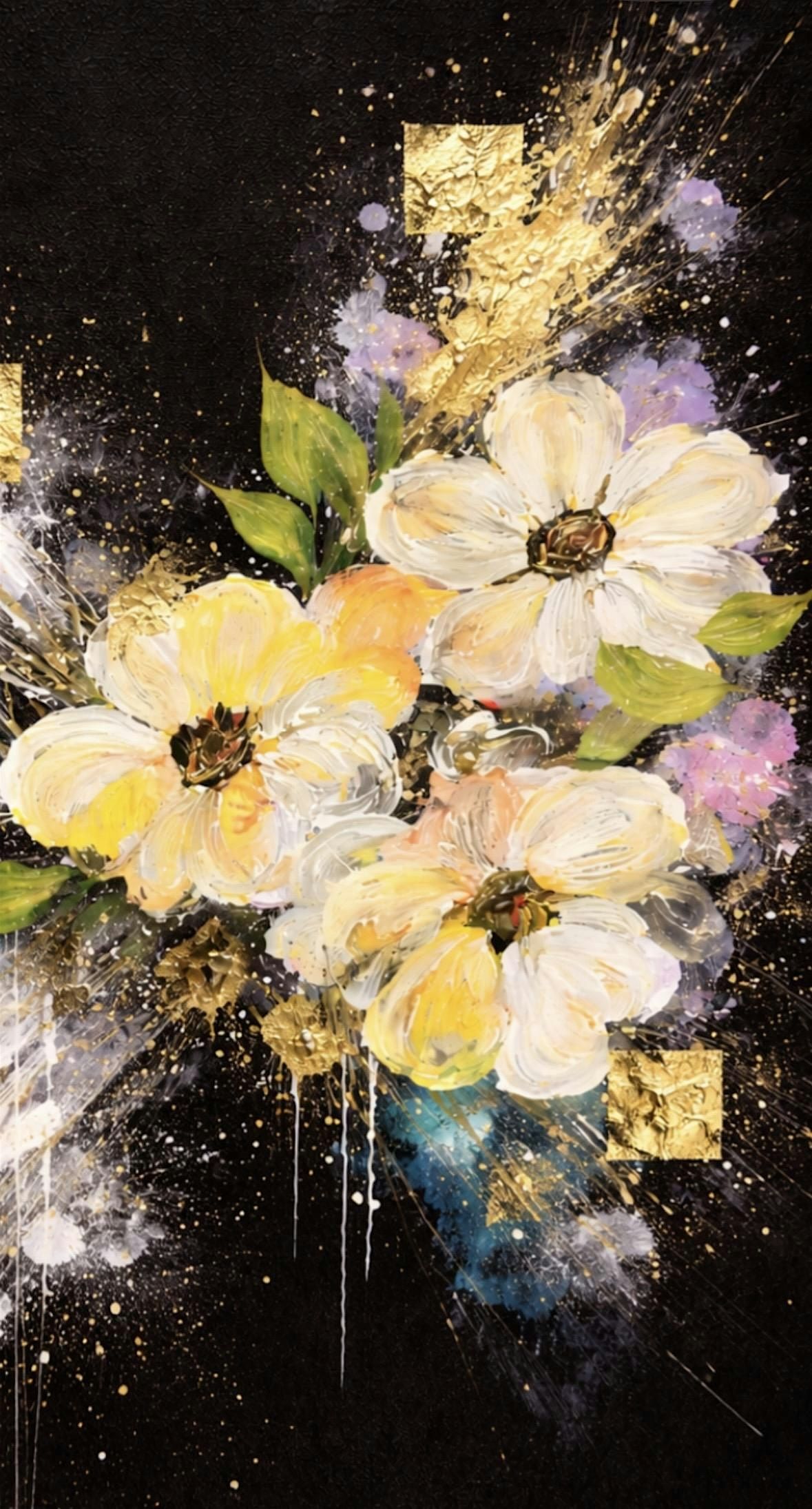 Floral expressionism on black canvas. With background created with various abstract art techniques.