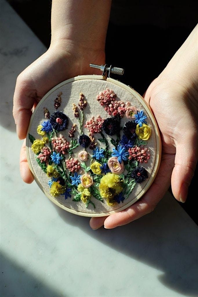 Create your own colorful, textured, embroidery garden during this four hour workshop. You will learn a variety of embroidery stitches that can be used to create everything from stems and leaves to hydrangeas, roses, daisies and even fringe moss! No experience required and all materials are included. Students will leave with a 6” hoop, assorted embroidery threads and embroidery needle to be able to continue their project on their own time.