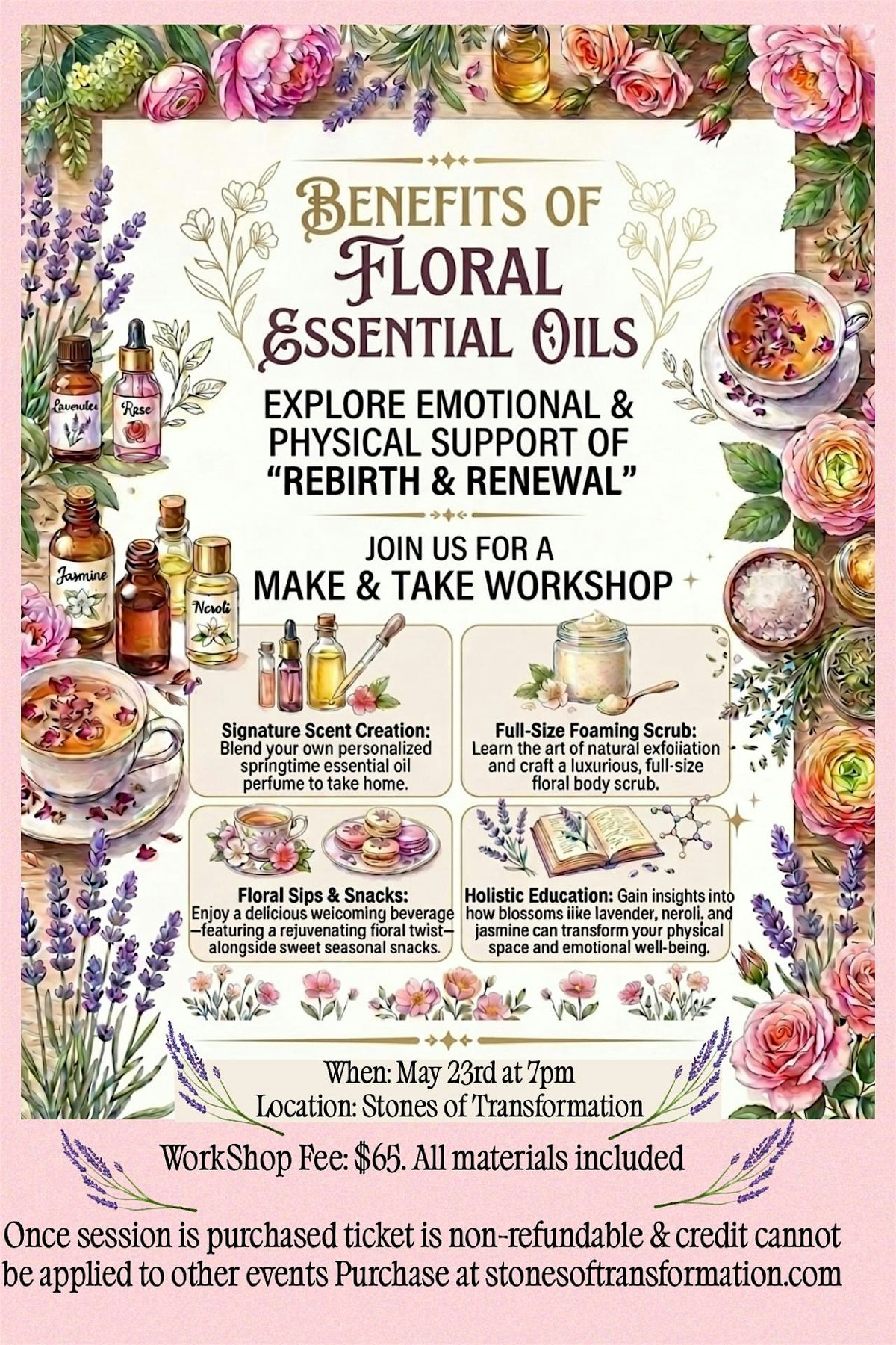 Enjoy Spring in full bloom by making your own personalized floral scent, a foaming scrub, and enjoy homemade holistic snacks and beverages.