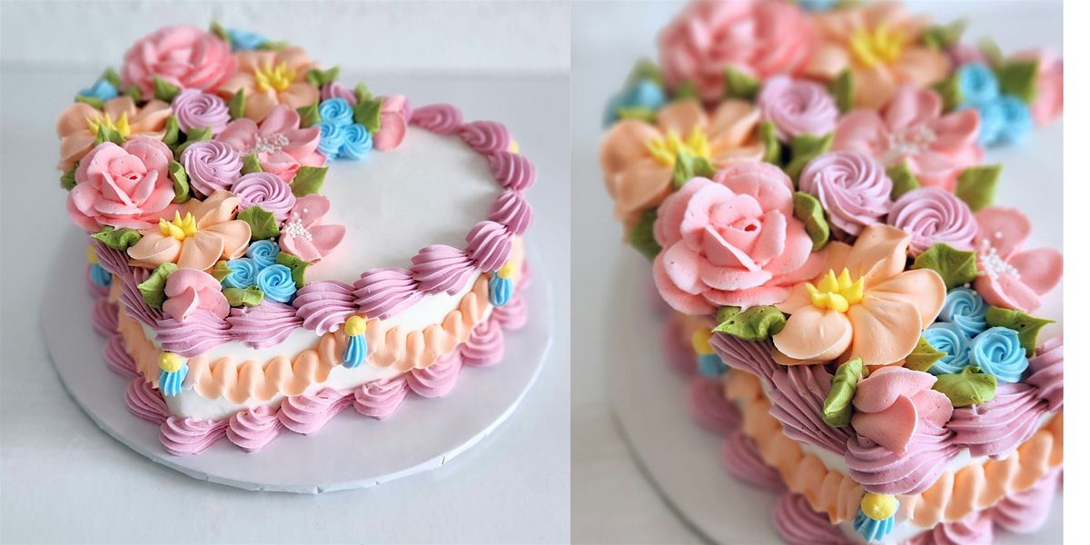Learn and decorate your own 8" Single Heart Shaped Cake topped with Buttercream Icing . Learn techniques using icing tips and tools! All supplies and instructions provided. Option of white or chocolate cake.