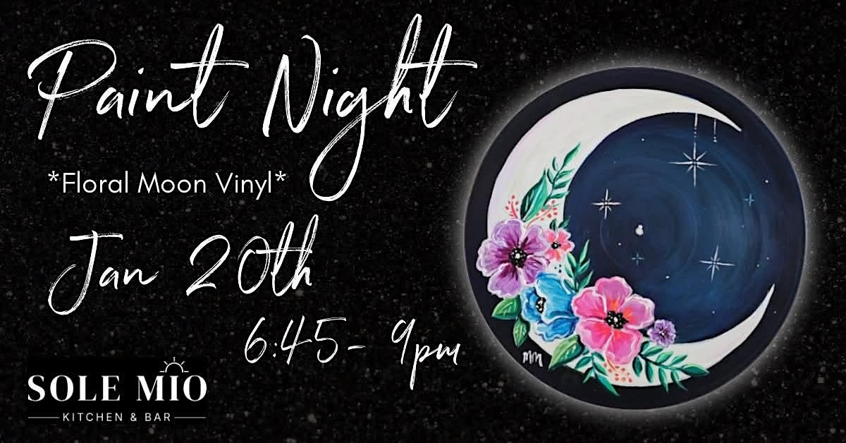 Welcome to Floral Moon on Vinyl Paint Night! Join us at Sole Mio Kitchen & Bar on January 20, 2026 at 6:45 PM for a creative evening. Get ready to unleash your inner artist as we guide you through painting a stunning floral moon masterpiece on vinyl records.