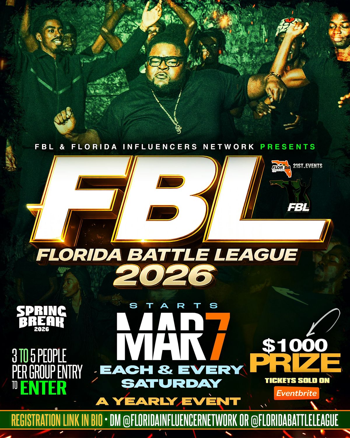 Welcome to Florida Battle League is a dynamic dance battle event created to inspire youth, empower the Florida Dance Community. 1k Cash