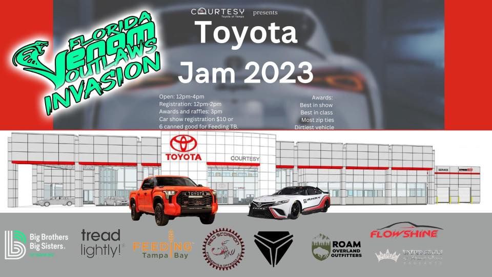 The event of the summer here at Courtesy Toyota! This event will benefit Big Brothers Big Sisters and Feeding Tampa Bay.Toyota Jam 2023 starts at 12PM on July 2nd. We will have an ALL MAKES/MODELS/CONDITION car show, raffles, and prizes for the show's winners!