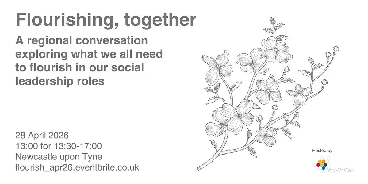 Flourishing, together, is a regional conversation exploring what we all need to flourish in our social leadership roles and what helps us create cultures of learning, development and growth. It is hosted by Yes We Can on Tuesday 28 April 2026, 13:00 for 13:30 to 17:00 at One Strawberry Lane, Newcastle.