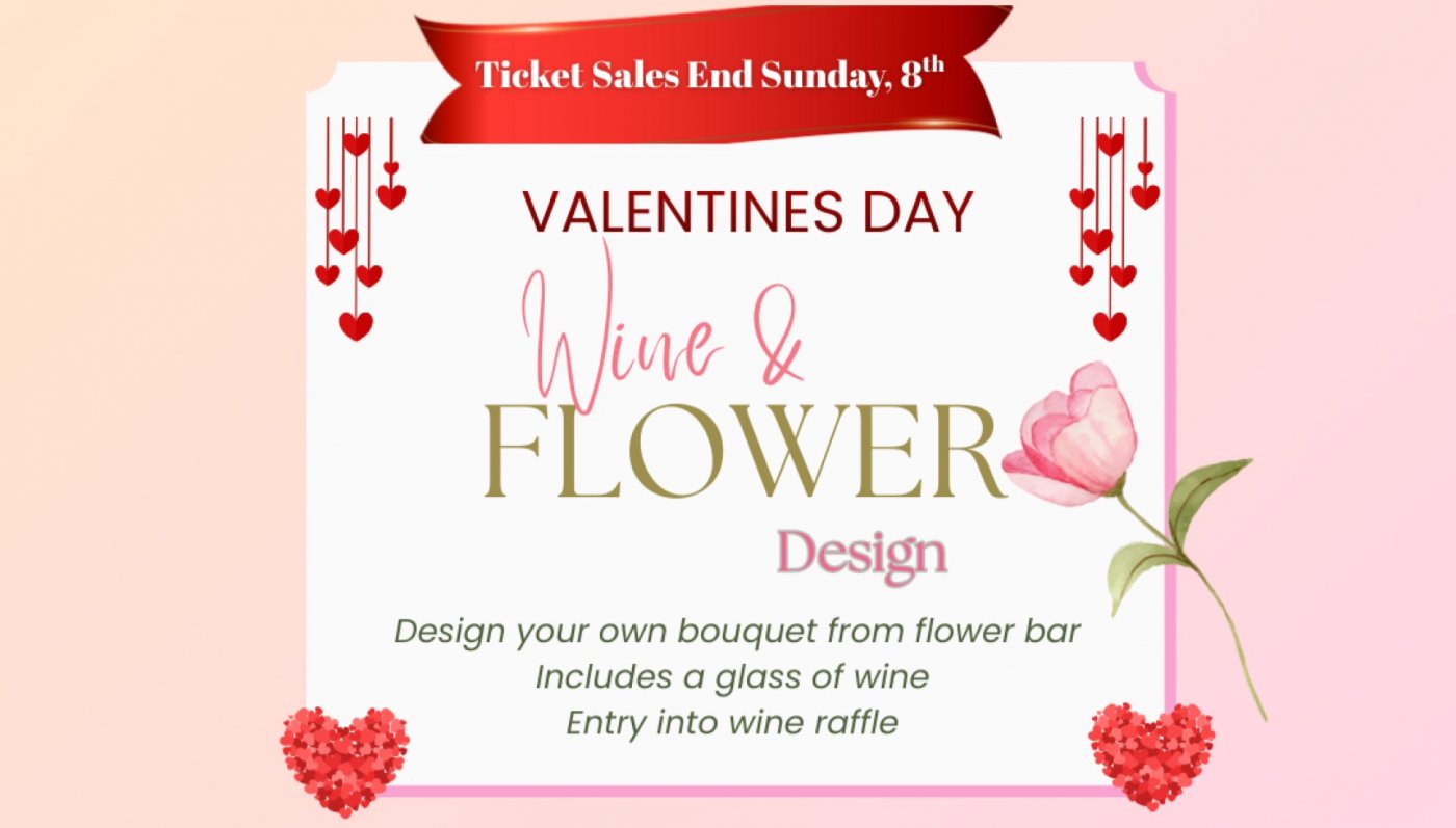 You’ll leave with a stunning bouquet just in time for Valentine’s Day, plus the option to purchase a bottle of wine to perfectly complement your creation.