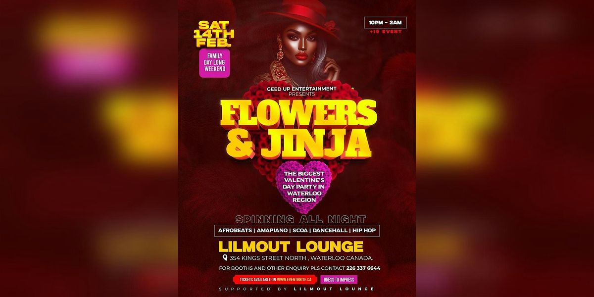 Flowers & Jinja is the ultimate Valentine’s weekend party in the Waterloo Region.Join us for a night of nonstop vibes, beautiful people, an