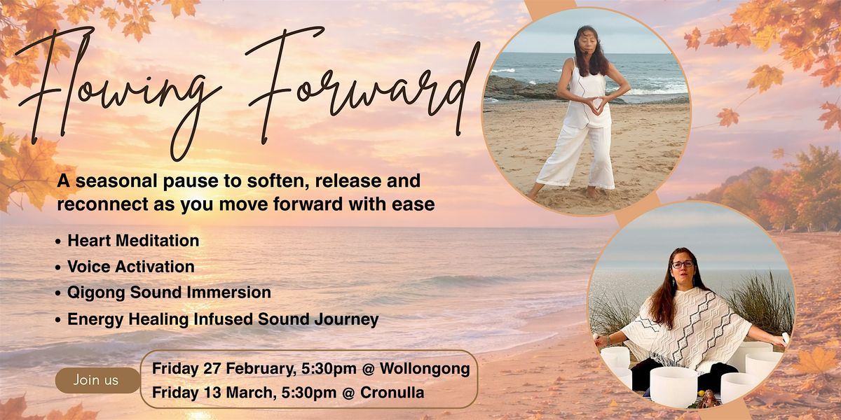 Step intoFlowing Forward— a heart-led seasonal gathering by the ocean, inspired by the quiet wisdom of Autumn. This immersive experience invites you to slow down, soften, and release as you reconnect with your heart through meditation, gentle movement, voice and sound. Held as a nurturing pause from the outside world,Flowing Forwardcreates space to let go of what no longer serves and move ahead with greater clarity, presence, and ease.