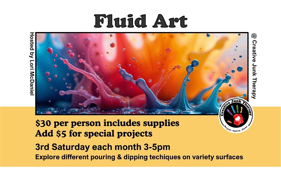 Fluid art is a fun, unique art form that uses a variety of paint techniques to create abstract designs by pouring, dipping, or immersing a canvas or object, resulting in unexpected effects.