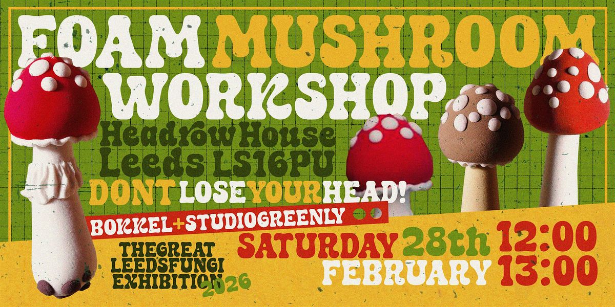 Join us for a fun & hands-on Foam Mushroom Workshop! You'll learn how to create your own quirky foam mushrooms from scratch. Come hang out, get creative, and take home your unique mushroom. It's an awesome way to relax and lose your head for a while. No experience needed (Luckily, these creatures don't bite!)– just bring your good vibes and let’s get creating!