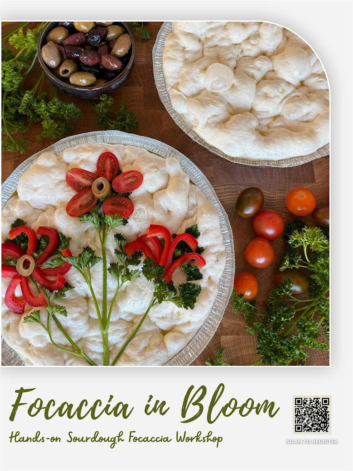 - Your own sourdough focaccia dough that you'll mix in-class and then bake at home