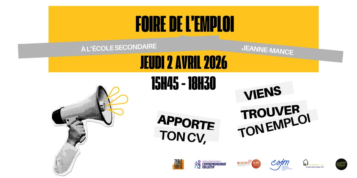 Participe à la Foire de l’emploi jeunesse organisée à l’École secondaire Jeanne-Mance et viens rencontrer des recruteurs sur place.
