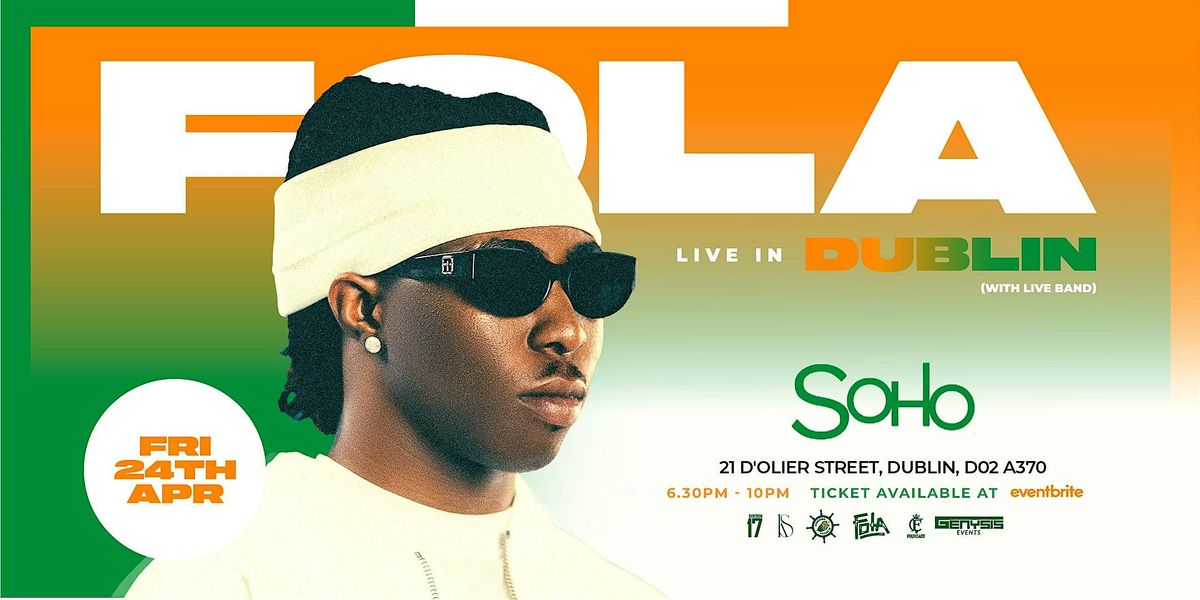 Join us for an unforgettable night with Fola hitting the stage live with a band right here in Dublin! This in-person gig promises great vibes and a chance to see Fola up close and personal. Whether you're a longtime fan or just love good music, this event is gonna be a blast. Don't miss out on the fun – come rock with us in Dublin!