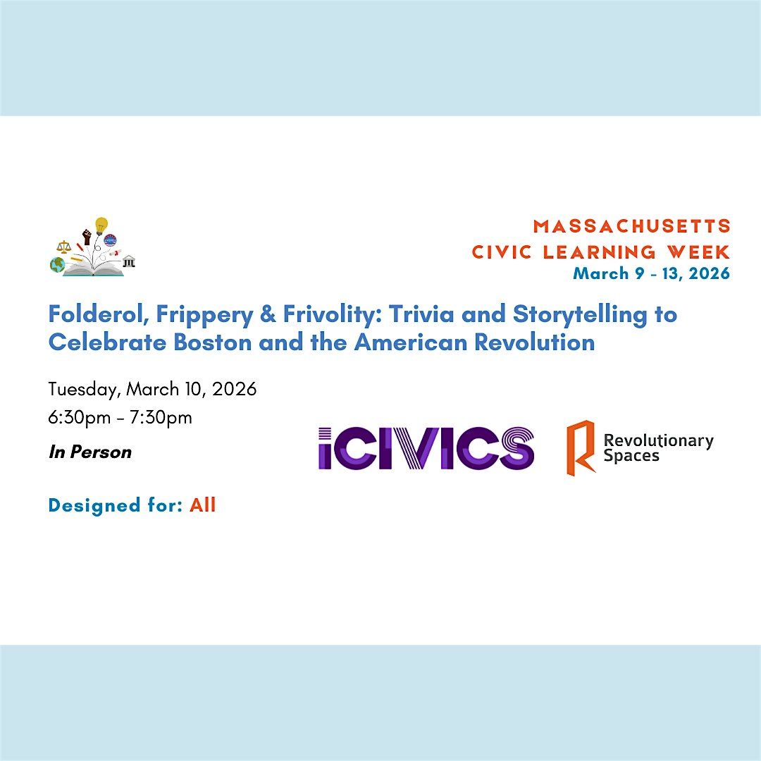 Do you know who Boston’s most famous silversmith is? Or which colonial leader offered to pay for the tea dumped in the harbor? Join iCivics and Revolutionary Spaces for a fun evening of Colonial-era Boston trivia and storytelling. This hour-long program tests your knowledge of A250 legends - people and moments - which made Boston the birthplace of the American Revolution. It will bring the streets you walk today to life in fun new ways! The event takes place at the Old South Meeting House, and doors will open at 6:00pm. Admission is free.