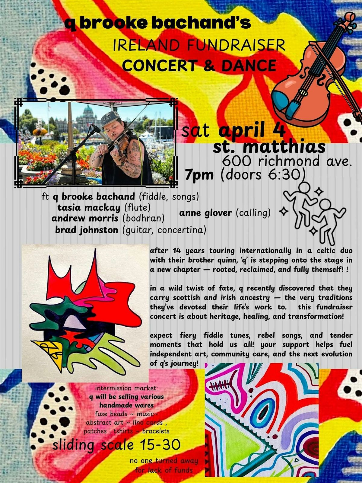 So expect fiery fiddle tunes, rebel songs, and tender moments that hold us all! Your support helps fuel independt art, community care and the next evolution in Q's journey!