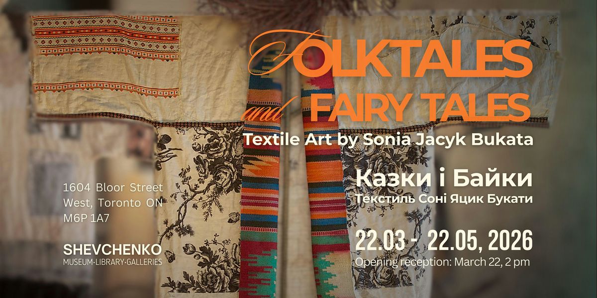 The Shevchenko Museum cordially invites you to the opening of FOLKTALES AND FAIRY TALES, an exhibition of textile art by Sonia Jacyk Bukata, on Sunday, March 22, at 2pm, 1604 Bloor St. West, Toronto, Ontario.