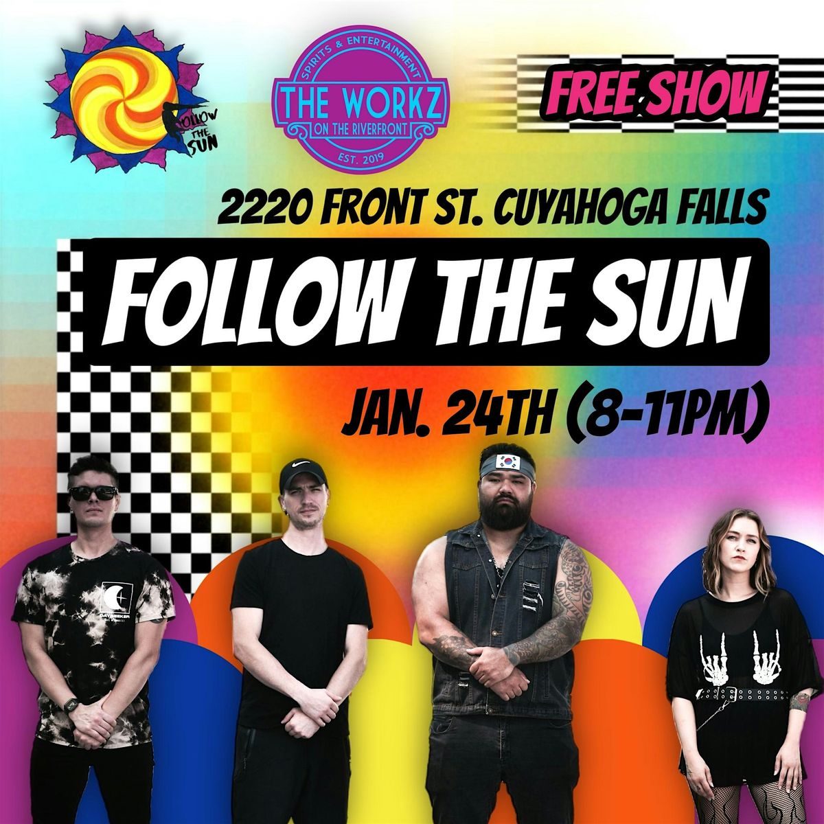 We’re excited to welcome back Follow the Sun, one of Northeast Ohio’s favorite live bands!On our stage on Saturday, January 24 from 8-11pm!Known for their vibrant sound, and feel-good energy, Follow the Sun delivers a crowd-pleasing mix of rock, pop, and groove-driven favorites that keep the room moving from the first song to the last.Whether you’re dancing up front or singing along from your seat, their engaging performance and upbeat vibe make for an unforgettable night out. If you’ve seen them before, you already know they bring the party — and if you haven’t, this is the perfect night to catch them live.Grab a drink, bring your friends, and help us welcome Follow the Sun back for another incredible night of live music!Only at The Workz