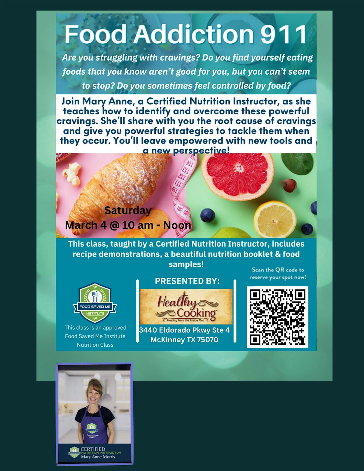 Join Mary Anne, a Certified Nutrition Instructor, for this fun interactive and informative class. We'll identify the root causes and equip you with powerful strategies to tackle them. If you're ready to be empowered with new tools and a new perspective, save your seat now.