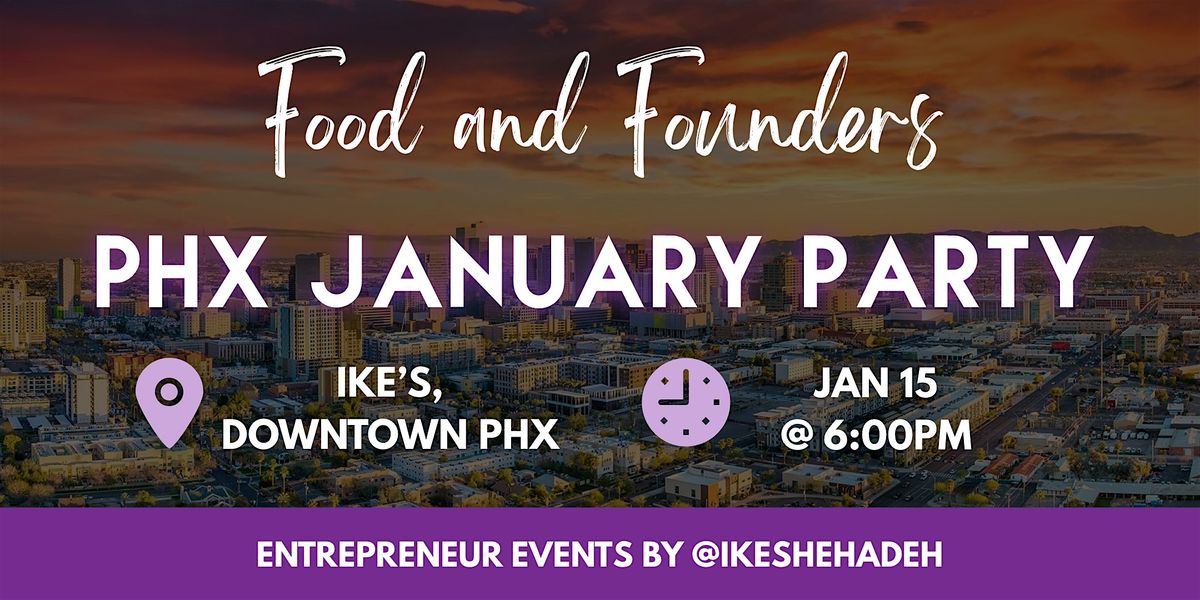 The Food & Founders January Party is happening Thursday, January 15th at Ike’s in Downtown Phoenix!