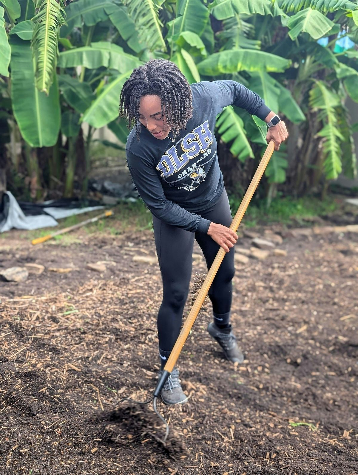 A typical workday could include laying mulch, spreading compost, managing weeds, or planting seeds.