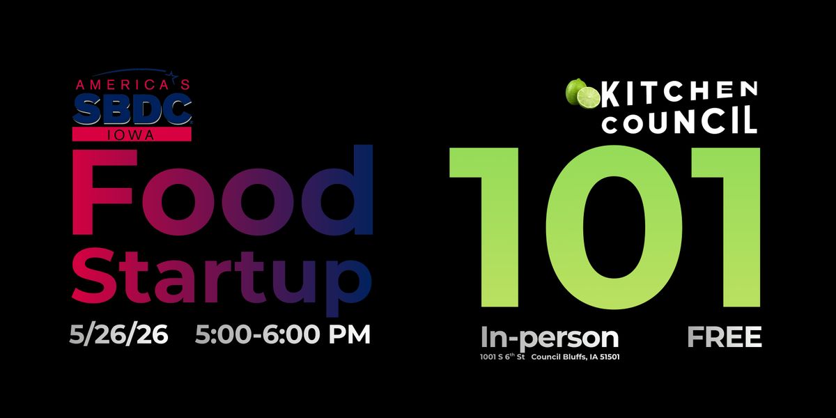 Hosted in partnership with Iowa Western SBDC, this free in-person class covers the real-world fundamentals of starting a food business: business structure, licensing and health department requirements, startup costs, funding options, commercial kitchen needs, branding, marketing, and building a plan that can actually work.