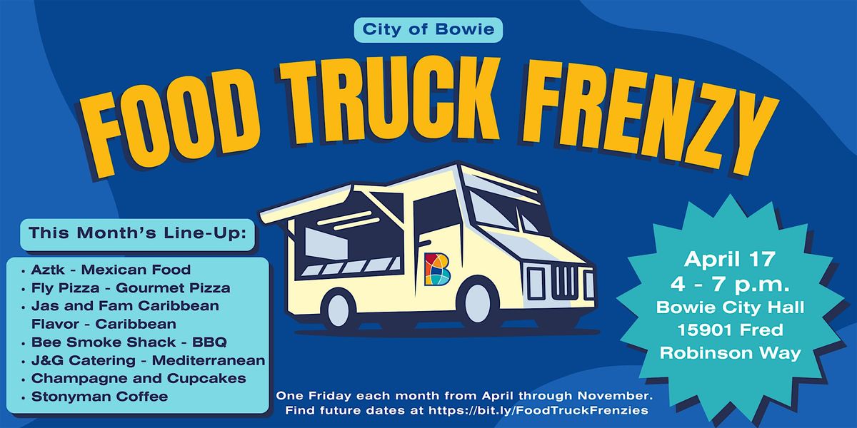 Come out to Bowie's Food Truck Frenzy on April 17 from 4 to 7 p.m and indulge in a variety of tasty food and drinks. There will be eight vendors, serving up flavors for every craving.: