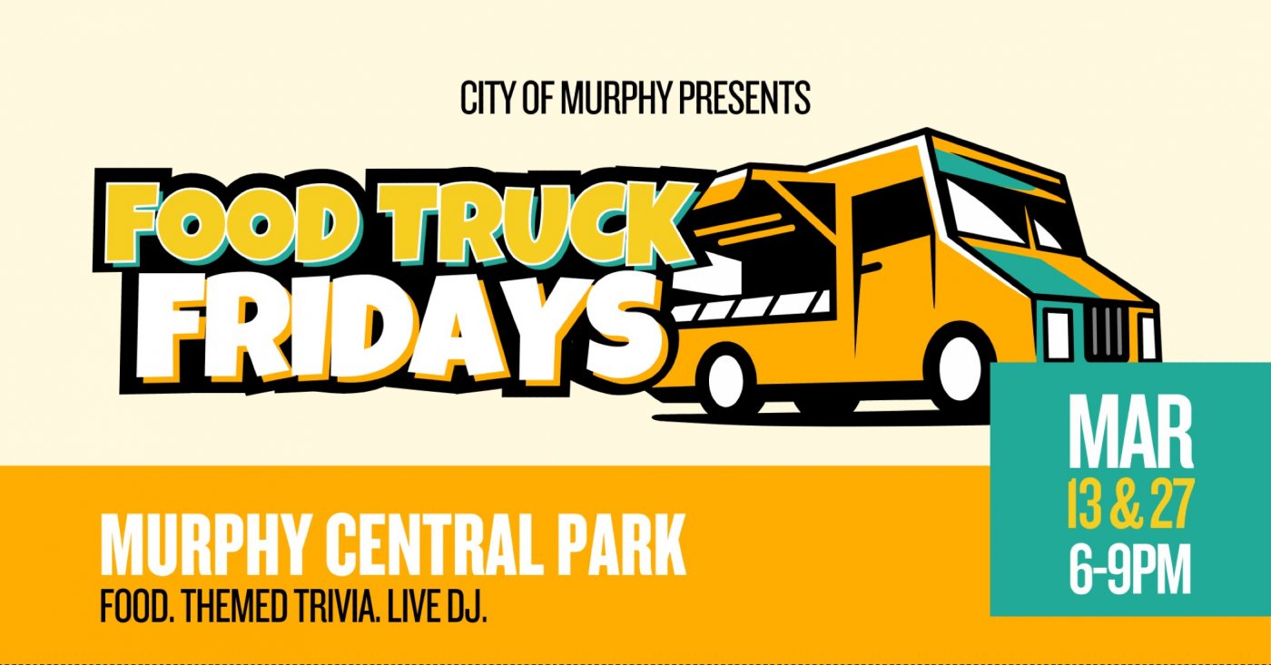Join us for Food Truck Fridays, a two-night event series bringing great food, music, and themed trivia to Murphy Central Park! Grab dinner from a variety of food trucks, enjoy live DJ sets, and test your knowledge during interactive trivia each night.