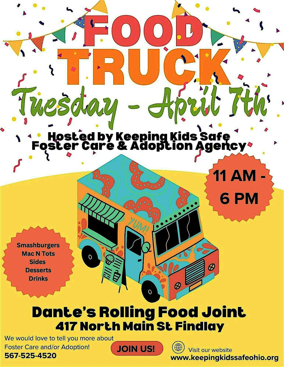 Food Truck Tuesday: Featuring DANTE'S ROLLING FOOD JOINT Hosted by Keeping Kids Safe Foster Care and Adoption Agency