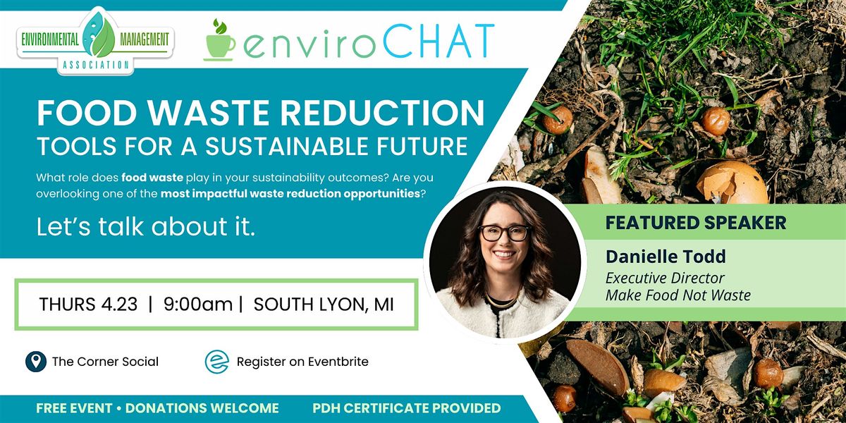 Join us in conversation with Danielle Todd, Executive Director of Make Food Not Waste for a discussion on reducing food waste and building more sustainable communities. Danielle is a leader in advancing practical strategies for waste reduction and circular economy initiatives, helping EGLE create their Michigan Food Waste Roadmap to identify strategies to meet Michigan’s food waste reduction goal of 50% by 2030.