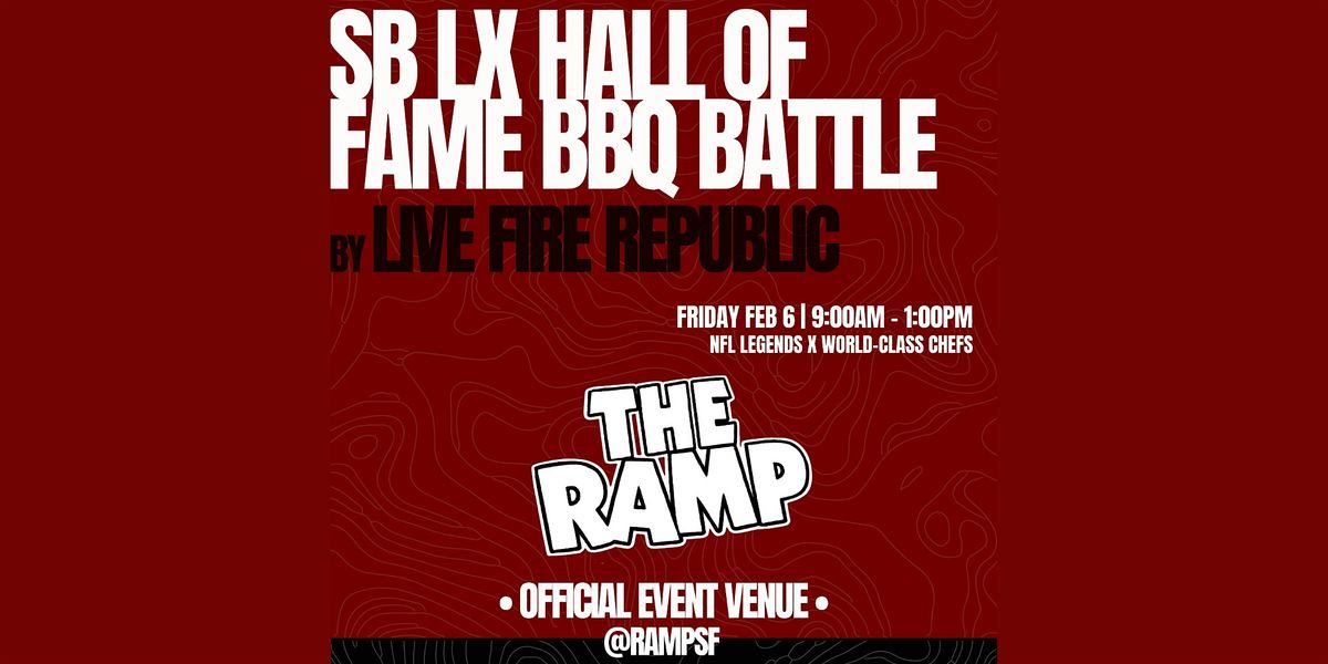 Join The Ramp for a one-of-a-kind Football-Grill Off experience as Live Fire Republic hosts and films the Football Hall of Fame Legends BBQ Battle—a high-energy, tailgate-style cooking competition pairing NFL Legends with World Champion Pitmasters, captured live from 9:00 AM–1:00 PM.