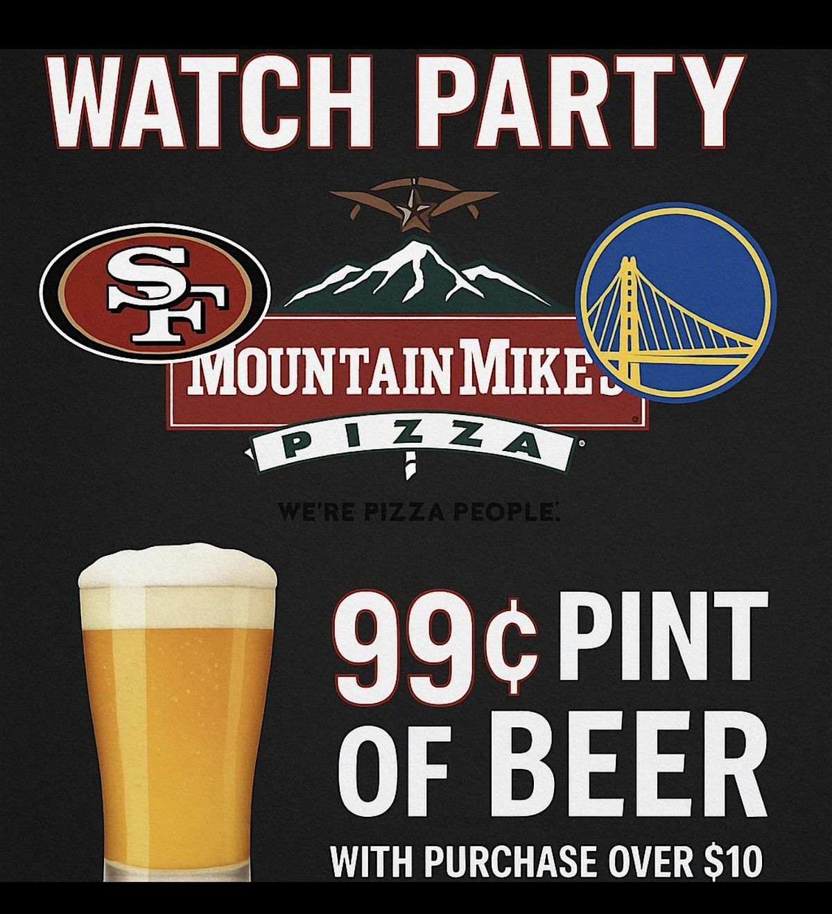 Come watch yo or favorite sports team. Wear a team spirit to earn 99c beer. Bring your friends and family