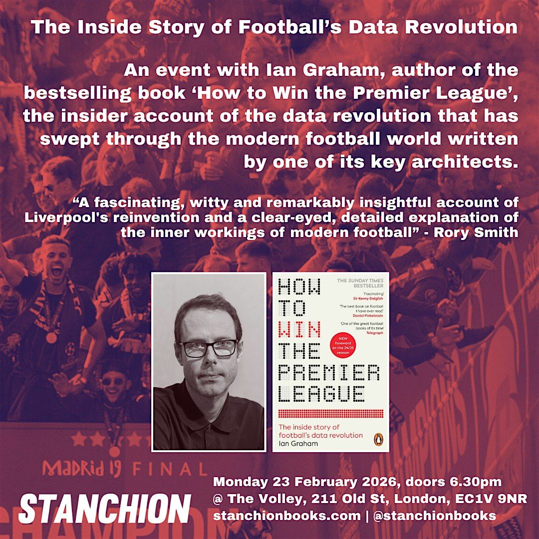 Join Stanchion Books for an event with Ian Graham, author of the bestselling book How to Win the Premier League, the insider account of the data revolution that has swept through the modern football world written by one of its key architects.
