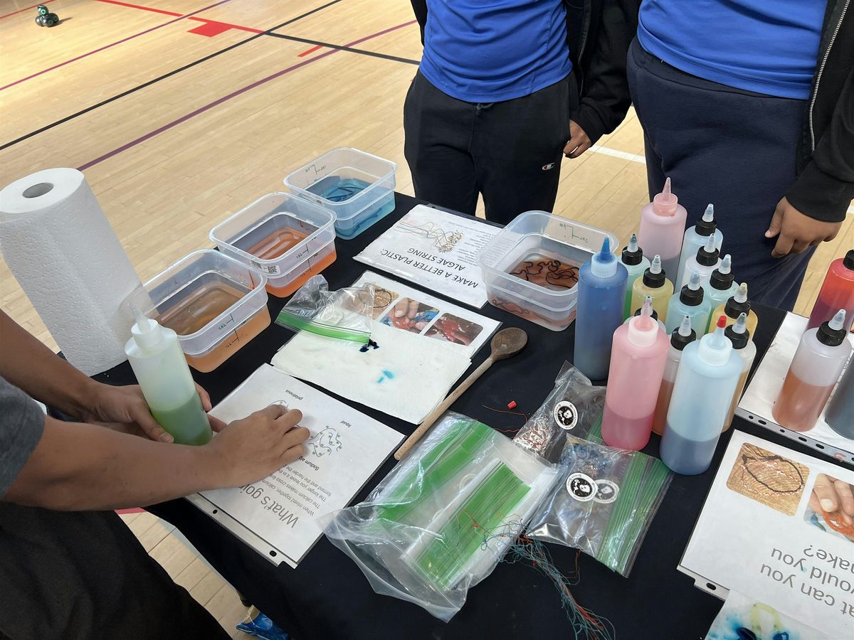 Join us in person for a super fun and creative workshop where you'll learn how to make better plastic using cool algae string. It's hands-on, eco-friendly, and perfect for ages 7-12. Bring your curiosity and get ready to explore the awesome world of sustainable plastics!