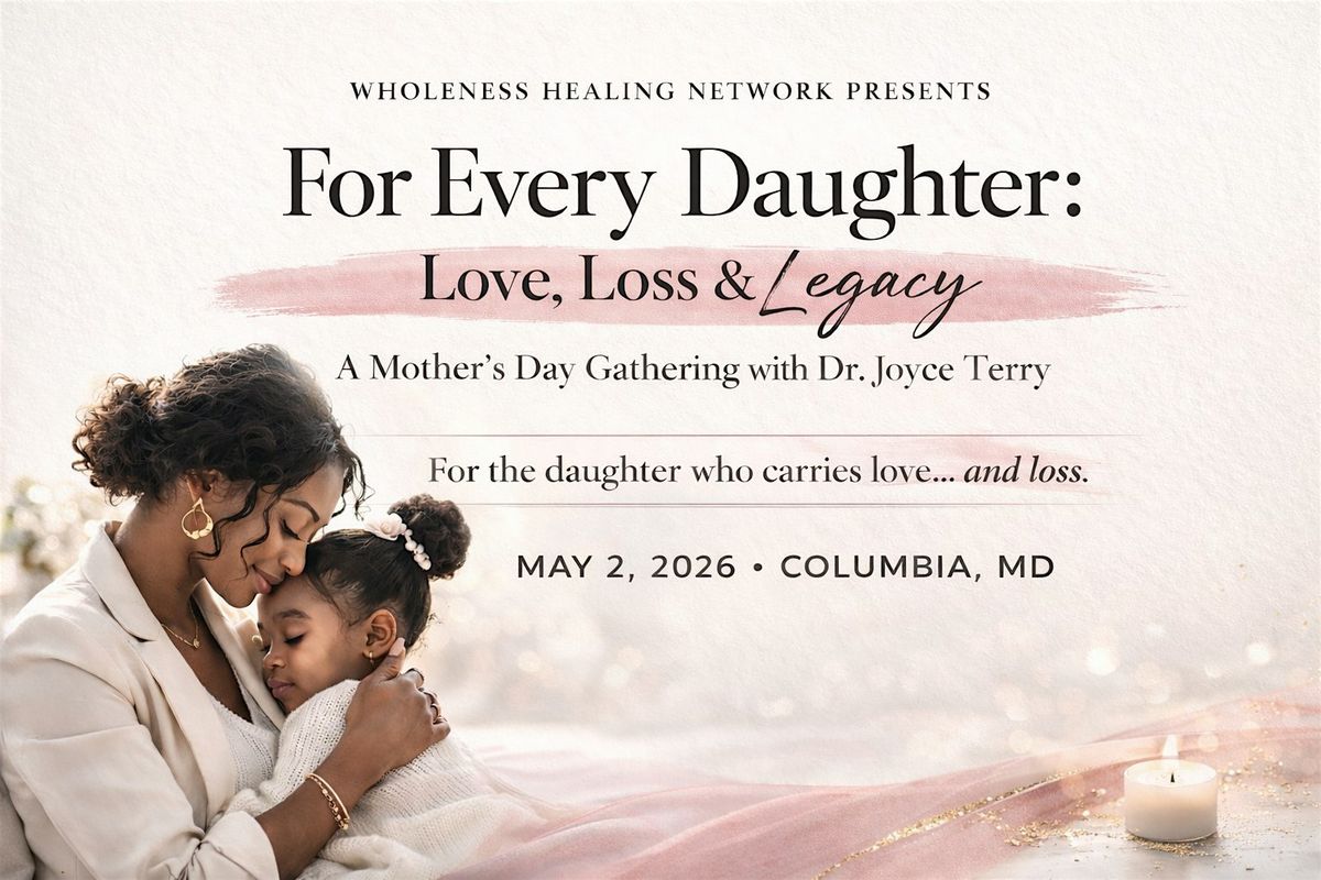 Led by Dr. Joyce Terry, this faith-centered gathering invites you into storytelling, emotional processing, and gentle restoration. Together, we will honor love, loss, legacy, and the truth that even in absence or fracture, your identity as a daughter is sacred.