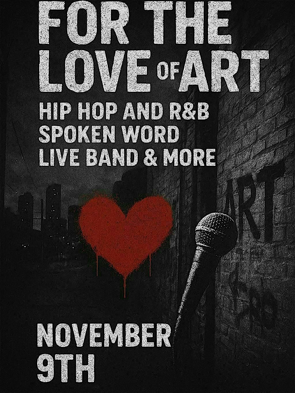 Welcome to For The Love Of Art event! Join us at The Reggae Lounge for a day filled with creativity and inspiration. Immerse yourself in a vibrant atmosphere where artists from all backgrounds come together to showcase their passion for art. From hip hop to R&B , Spoken Word , Live Band & More There will be a diverse range of artwork to admire . Don't miss this opportunity to connect with fellow art enthusiasts and support local talent. Let's celebrate the beauty of art together!