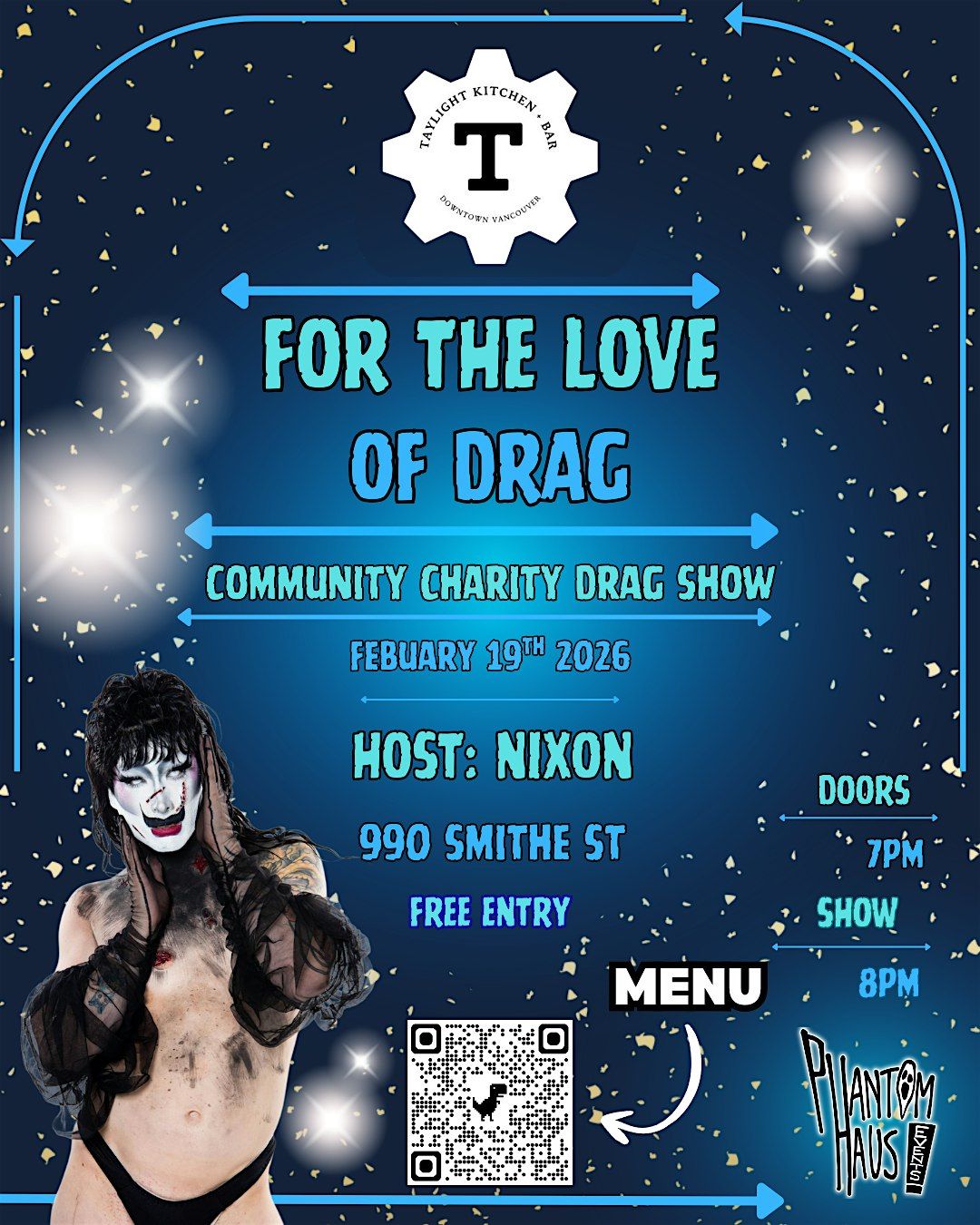 Monthly charity show produced by Phantom Haus Events. Venue is Taylight Kitchen, and the charity for March is Hogan's Alley Society!